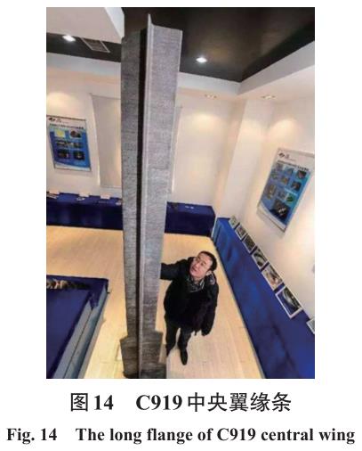 LMD 技術(shù)在國內(nèi)外航空航天領(lǐng)域得到了廣泛的應(yīng)用,例如波音公司、空客公司、洛克希德馬丁公司、GE航空等世界著名的航空公司都在大力發(fā)展各自的激光直接沉積技術(shù)[13]。北京航空航天大學(xué)研制的某大型激光直接沉積金屬增材制造設(shè)備如圖 12所示,可為中國商用飛機(jī)、軍機(jī)項目制造大型復(fù)雜部件,包括鈦機(jī)身骨架及高強(qiáng)度起落架。北航王華明教授團(tuán)隊研制了主承力飛機(jī)鈦合金加強(qiáng)框等關(guān)鍵構(gòu)件,實現(xiàn)了在包括C919大型客機(jī)在內(nèi)的多種型號飛機(jī)上的裝機(jī)應(yīng)用。北航應(yīng)用LMD技術(shù)制造出了飛機(jī)大型鈦合金主承力構(gòu)件,如圖13所示。西北工業(yè)大學(xué)采用LMD技術(shù)成功試制了C919機(jī)翼肋構(gòu)件,如圖14所示。